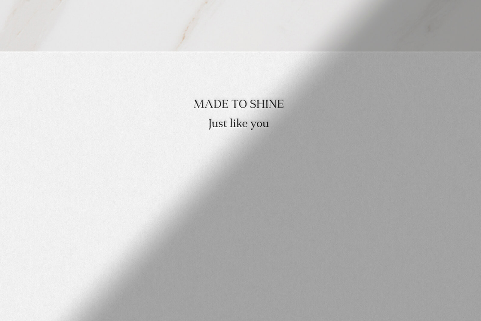 Made to shine. Just like you — фирменная фраза бренда, которая используется в дизайне рекламных носителей. Ее начертание допустимо только в таком варианте. Это создает устойчивое восприятие бренда и является фирменным элементом.